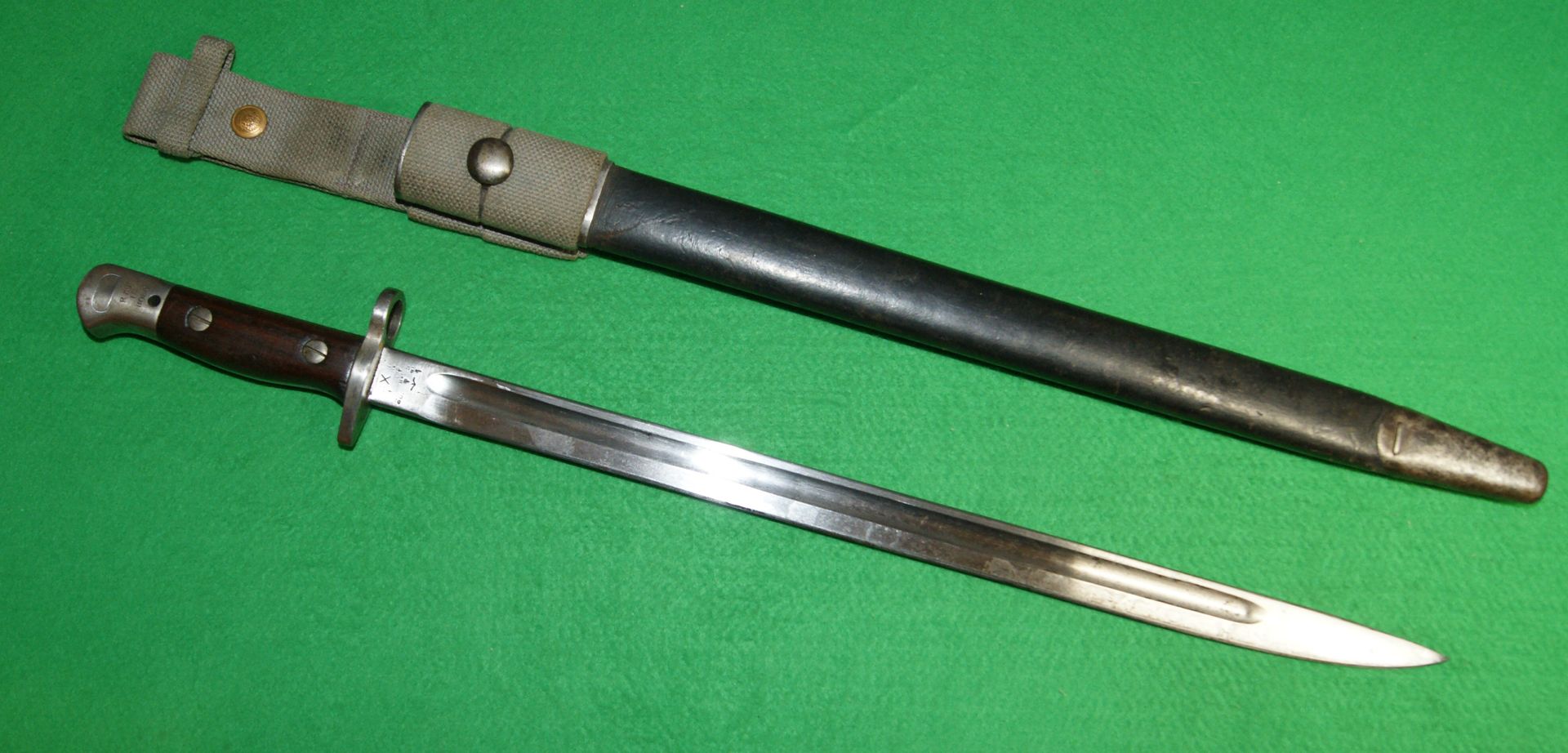 This bayonet is stamped at the ricasso with a crown G.R over 1907, dated '9-18' for September 1918