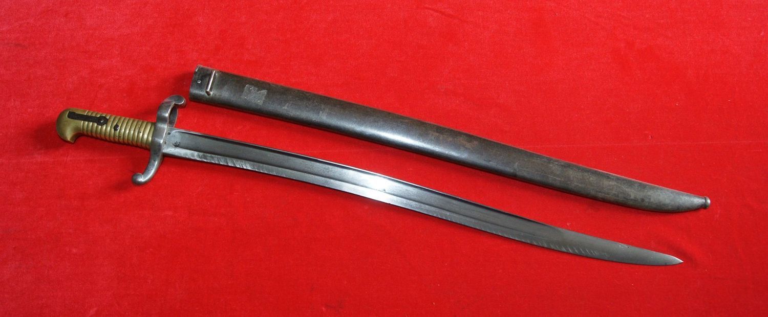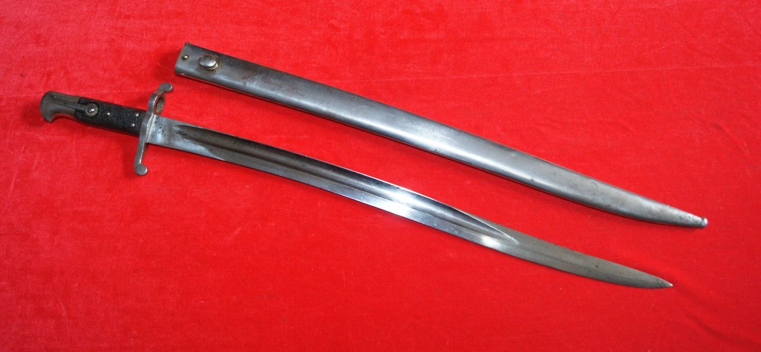 A Rare 1893 Pattern Yataghan sword bayonet bushed for the Martini Henry MK III Artillery Carbine. See page 157 of Skennerton's book British & Commonwealth Bayonets (B119).