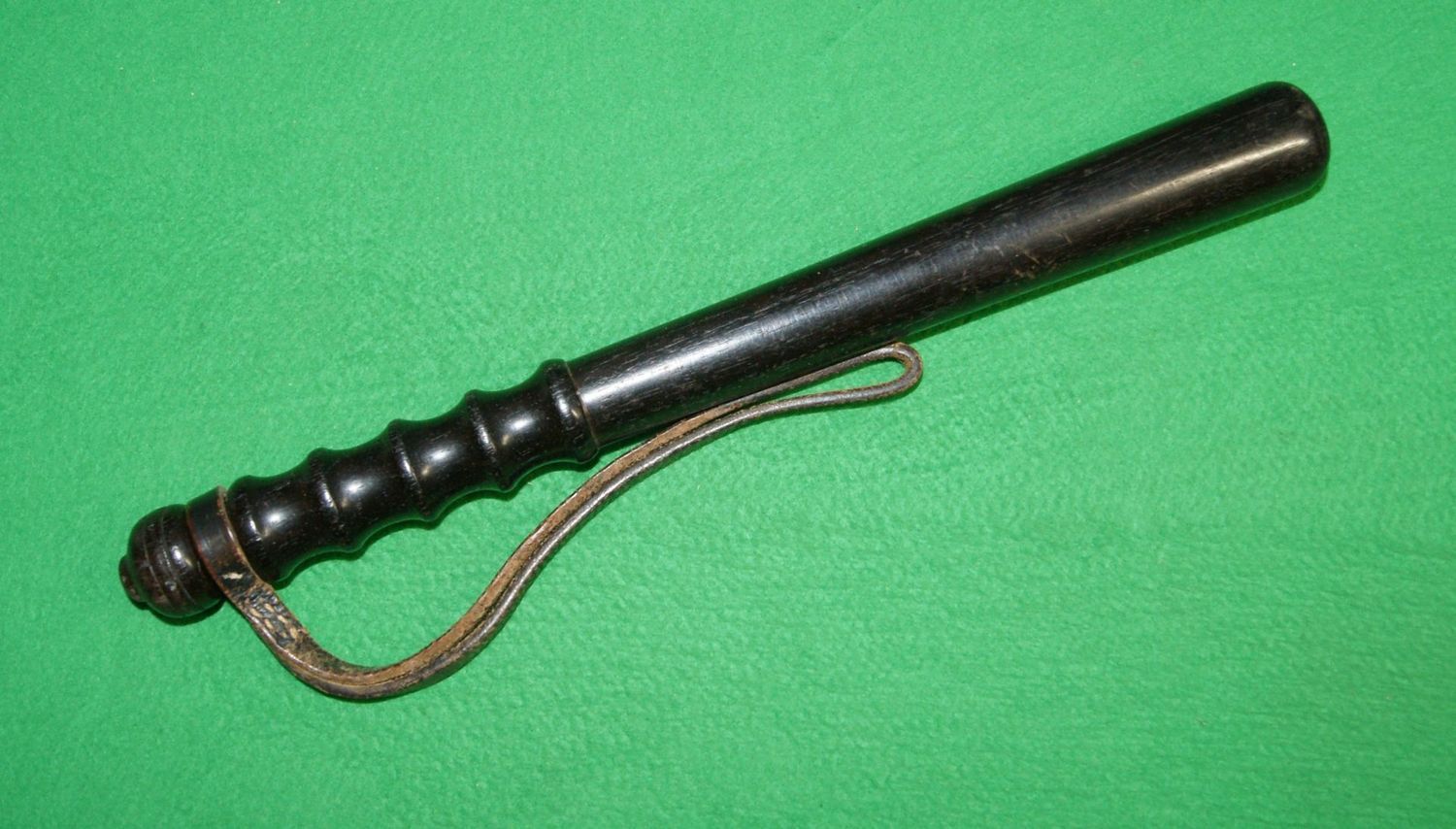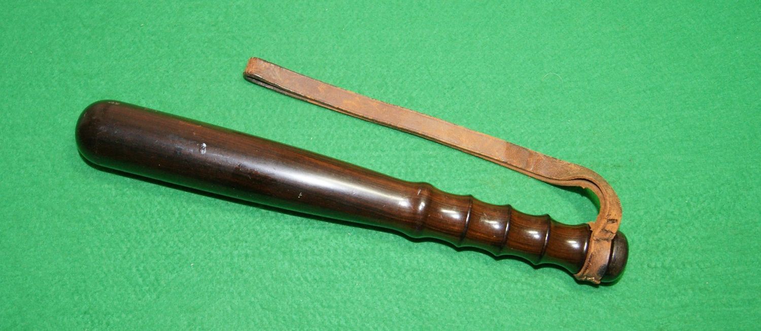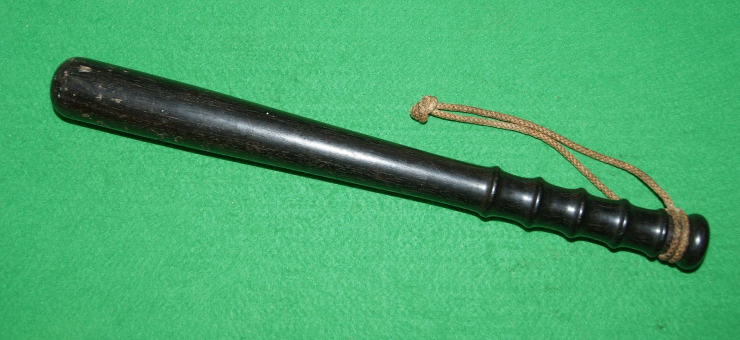 This type of heavy short wooden truncheon was prefered by plain clothes officers on under cover work as it was easier to conceal and very effective when needed.