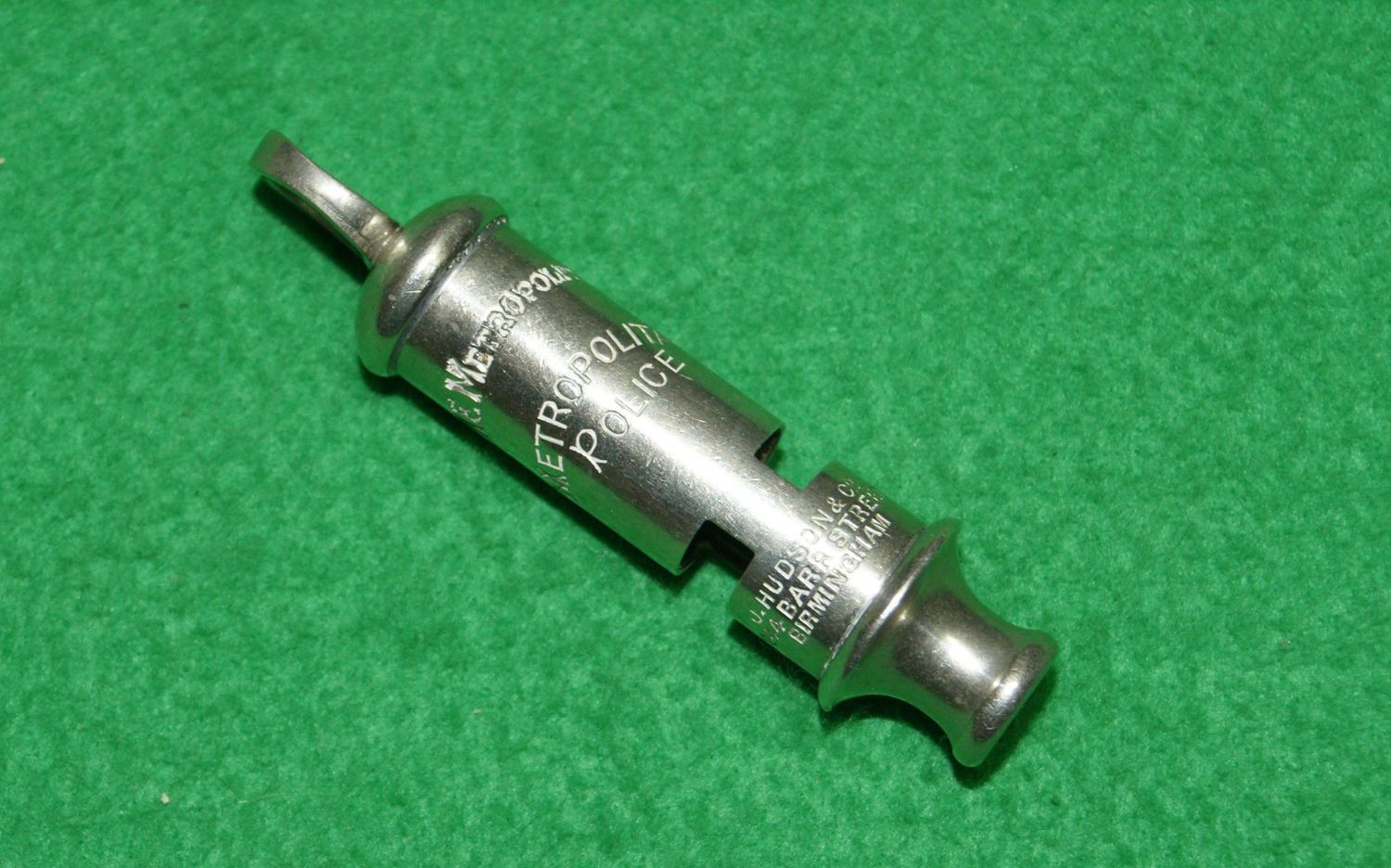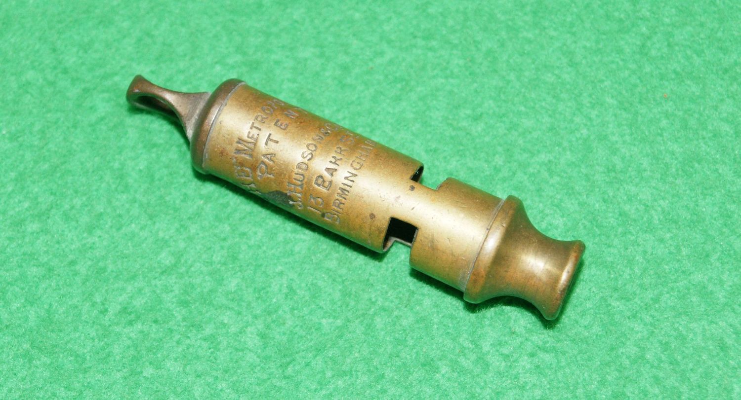 An early 20th century Metropolitan Police whistle by J Hudson & Co 244 Bar Street Birmingham.
